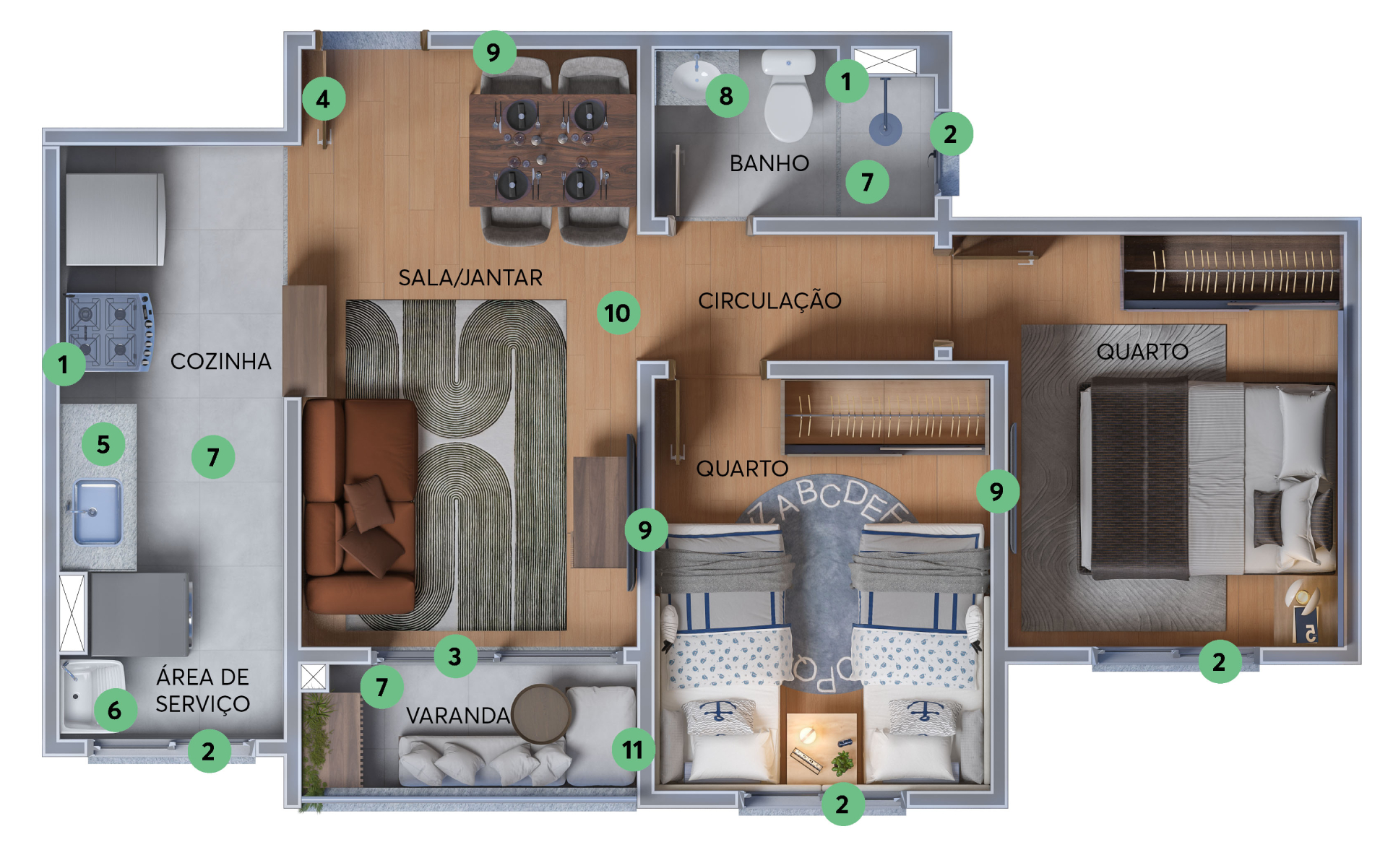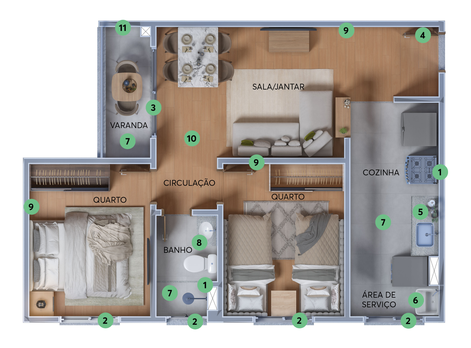 Área de ServiçoBanheiro SocialCozinhaSalaVaranda